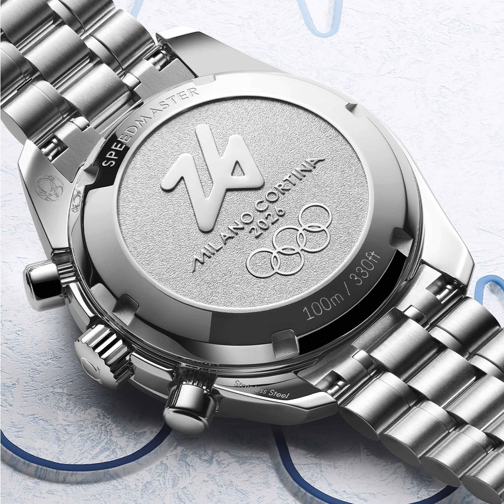 Die Omega Speedmaster Milano Cortina 2026 wird vom automatischen Co-Axial Kaliber 3330 angetrieben und bietet eine Gangreserve von bis zu 52 Stunden. Als bleibende Erinnerung an das sportliche Großereignis befindet sich auf dem Gehäuseboden der bis 10 bar wasserdichten Uhr ein geprägtes Medaillon mit dem Milano Cortina 2026-Logo.