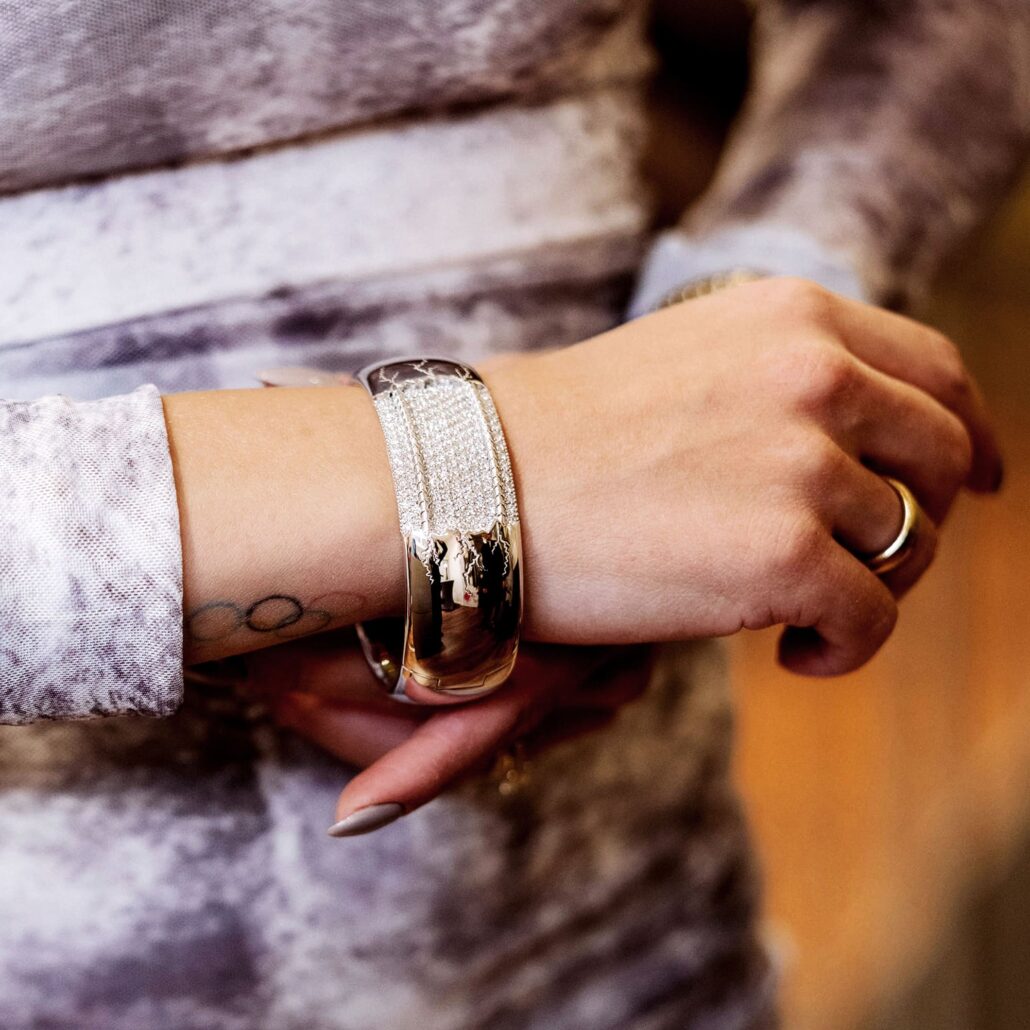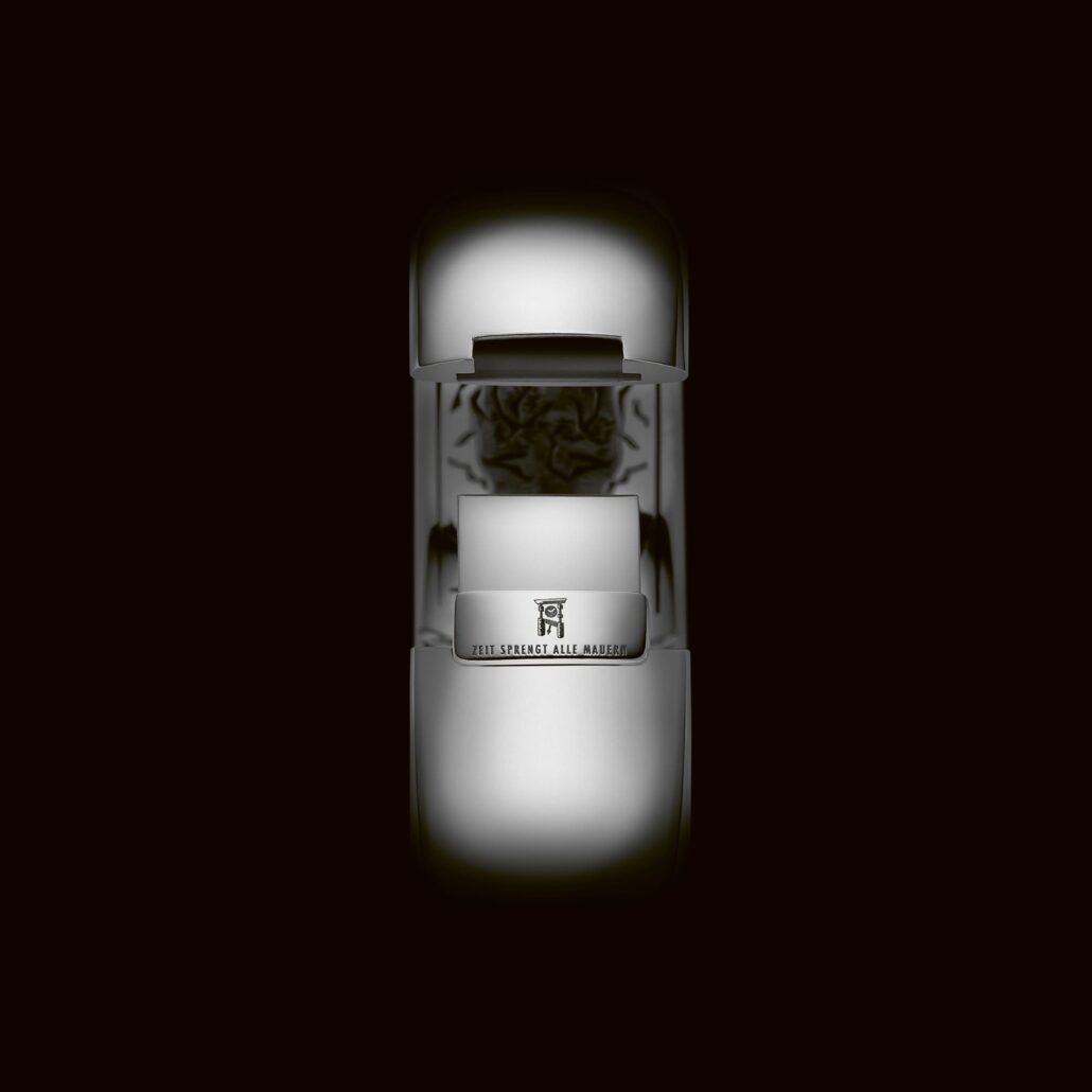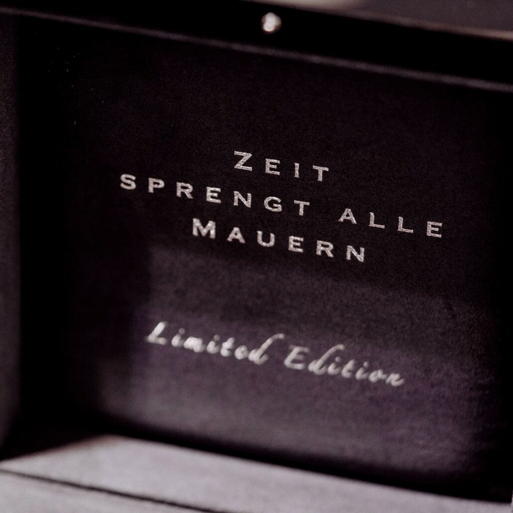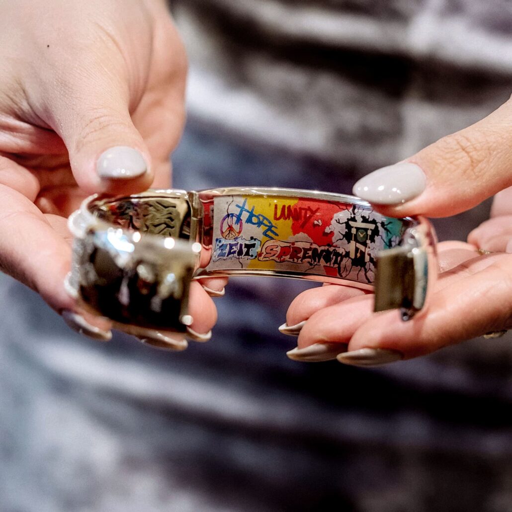 „Zeit sprengt alle Mauern“ lautet die Inschrift des Armreifs, genau wie bei der Friedensuhr, die Jens Lorenz (5. Generation) im Jahr 1989 als Zeichen der Hoffnung entwarf.