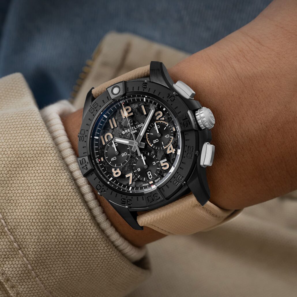 Funktionen: 3-Zeiger, Chronograph, Stunde, Minute, Sekunde, Chronograph ¼-Sekunde, 30 Minuten, 12 Stunden