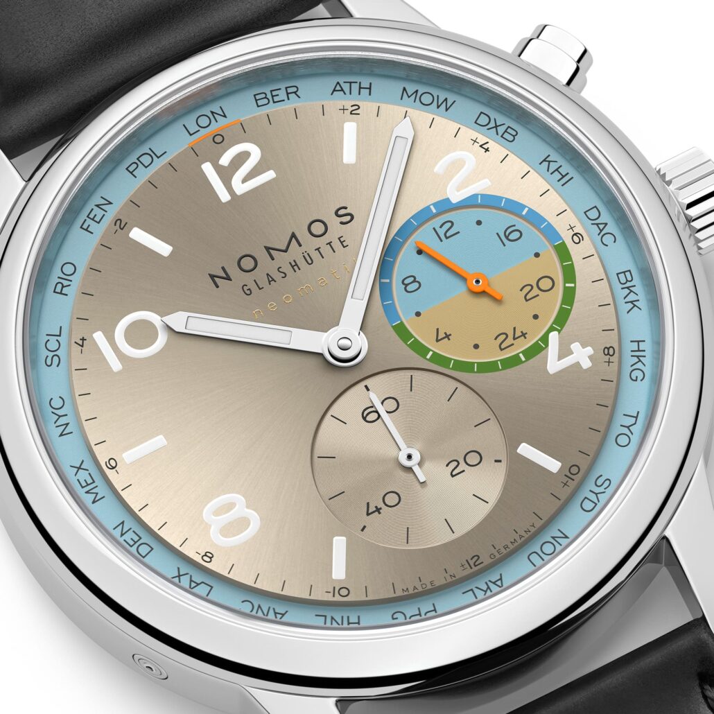 Funktionen: 2-Zeiger, kleine Sekunde, 24-Stunden-Zeiger, Stunde, Minute, mit Weltzeit-, 24-Stunden-Heimatzeit- und Tag- und Nacht-Anzeige